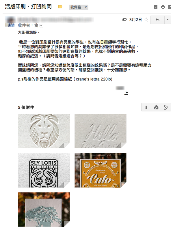 所以紙張的纖維不適合太密的 太挺的 條數太薄的紙(低於.5mm 的紙 比較看不出是用letterpress 印的